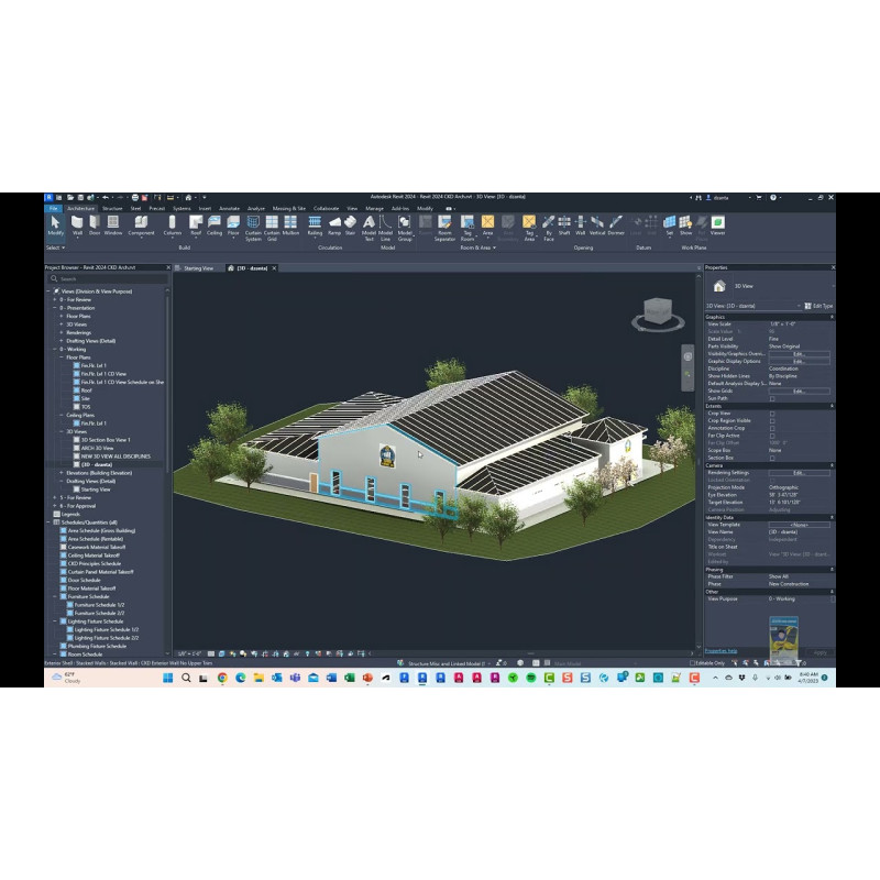 Программа Revit открывает широкие возможности передачи проектного замысла визуализированную структуру, а затем рабочие чертежи. На первом этапе доступно создание фасадов построек и сооружений, поверхностные планы в разрезе, 3D-виды и создание спецификации. Можно разрабатывать фотореалистичную визуализацию и стереопанорам для четкого понимания концепции и демонстрации идеи инвесторам.