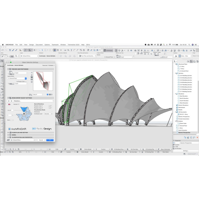Новий компонент Dexstruct Grasshopper може бути використаний для отримання даних поверхні елемента ARCHICAD в якості еталона проекту. За допомогою цієї функції зміни в базовій схемі проектування BIM автоматично оновлять всі пов'язані деталі проекту, згенеровані за допомогою алгоритмів проектування в Grasshopper.