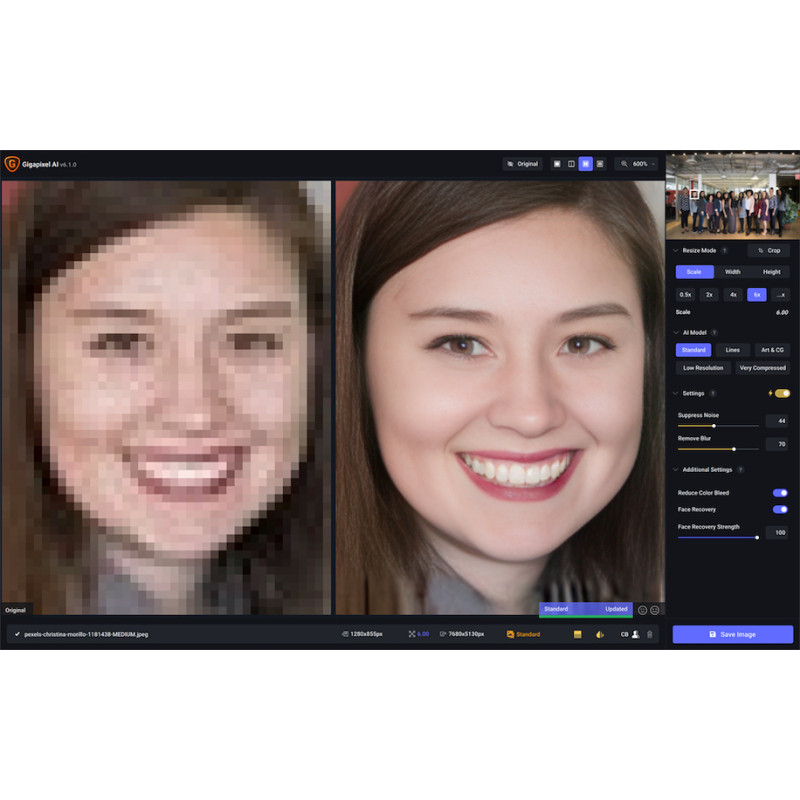 - Якість. До цього часу не існувало комерційного продукту, заснованого на глибокому навчанні, збільшення дозволу відео. Video AI – єдиний продукт, який використовує машинне навчання для екстраполяції деталей з ваших кадрів для реалістичного вигляду. Якість виведення з Video AI краща, ніж у будь-якого іншого продукту.